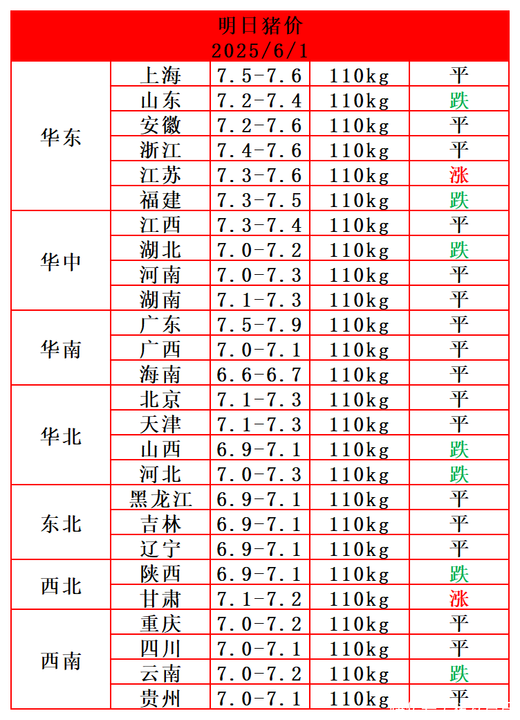 附:2025年6月1日生猪出栏成交价,仅供参考!